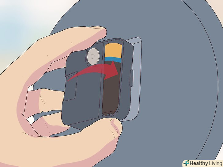 Вставте нову батарейку. Прочитайте вказівки на батарейному відсіку годин щодо того, яка батарейка їм потрібно. Обов'язково правильно розташуйте плюс і мінус батарейки – саме так, як це зазначено на батарейному відсіку. [5]