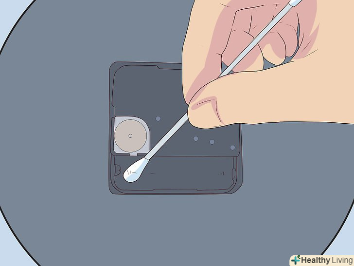 Витріть контакти насухо. чистою ганчіркою або паперовим рушником обережно витріть контакти. Дуже важливо, щоб вони були сухими, коли в годинник буде вставлена Нова батарейка. Якщо у вас немає чистої сухої ганчірки, дайте контактам самостійно висохнути. [4]