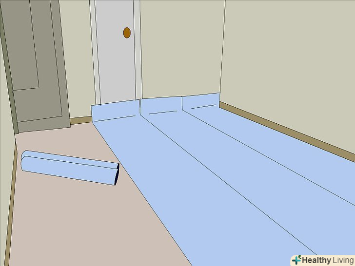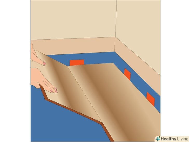 Розстеліть підкладку на підлозі в один шар. відріжте необхідну довжину за допомогою будівельного ножа. Прикріпіть підкладку до підлоги, а шви запечатайте клейкою стрічкою.