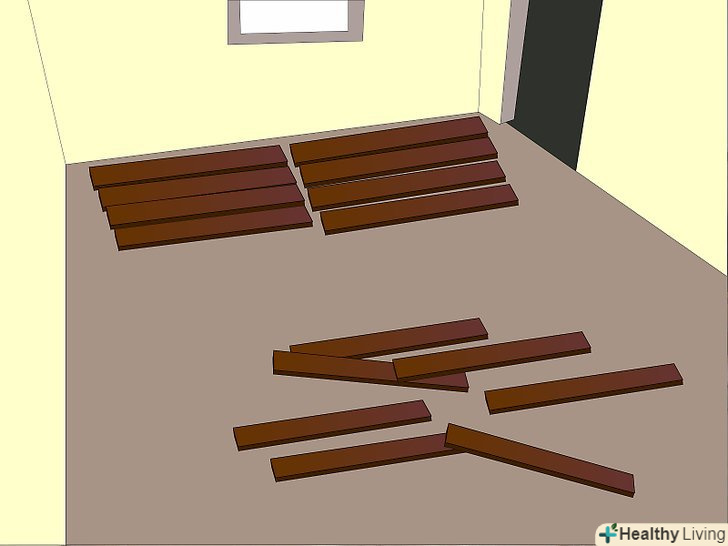 Продовжуйте укладати кожен новий ряд поки ви не покриєте всю кімнату. простежте, щоб кожен новий ряд розташовувався в одній площині з іншими, тим самим надаючи всій композиції єдиний зовнішній вигляд.