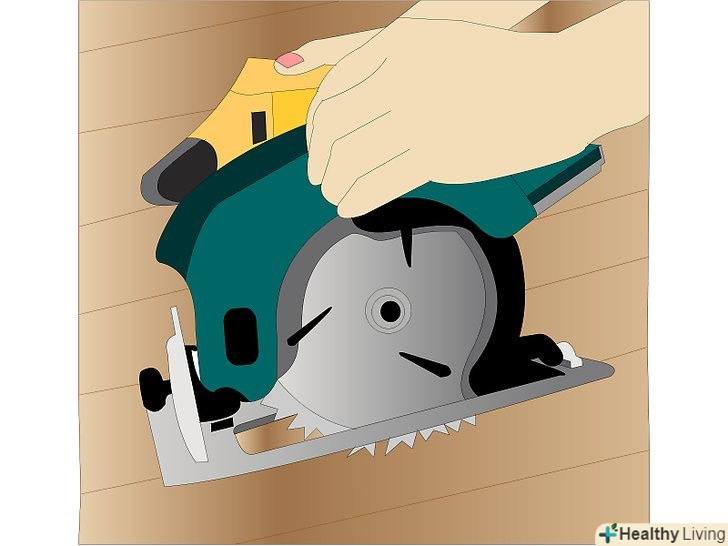Подрежьте останню дошку в ряду, так щоб вона підійшла за розміром, залишаючи простір між дошкою і стіною (для можливих розширень і звужень). для того щоб обрізати дошку, ви можете використовувати дискову пилу або лобзик.- Якщо у вас виникли проблеми з підгонкою останньої частини через стіну, то ви можете від'єднати передостанню дошку і спочатку укласти останню панель. Після того як остання панель укладена і щільно прилягає до розпірного клину, поверніть відсутню дошку і закріпіть пази. [2]
