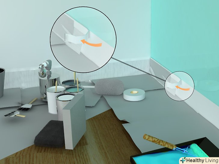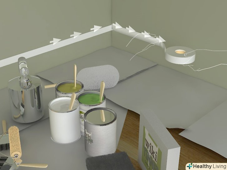 Заклейте малярською стрічкою все, що не повинно бути пофарбовано (Меблі, вікна, дерев'яні вироби, підлога, стеля і так далі).- Переконайтеся, що стрічка має рівні краї. Пам'ятайте, що край стрічки буде забруднений у фарбі, через що навіть найменша помилка згодом може виявитися дуже і дуже помітною (особливо якщо пляма від фарби буде іншого кольору).
