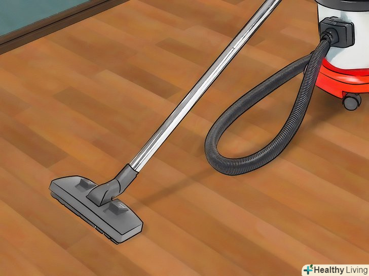 Пропилососьте підлогу. це необхідно для того, щоб прибрати пил і бруд. Попередньо перевірте, щоб на щітці пилососа знизу не було ніяких гострих пластикових деталей. Щіткою зі зламаними вбудованими коліщатками можна подряпати підлоги. Якщо у вас немає нормального пилососа, скористайтеся віником, щоб змести пил і сміття.