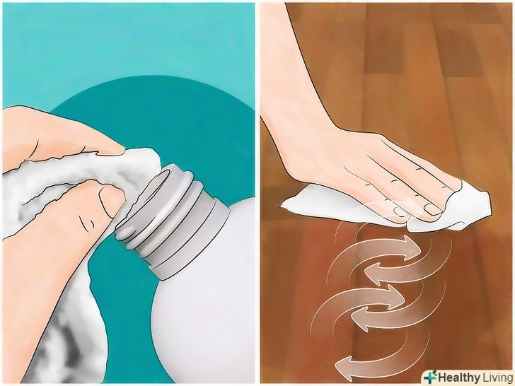 Обробіть підлогу поліроллю. залежно від вказівок щодо застосування, поліроль може розпорошуватися безпосередньо на підлогу або попередньо наноситися на серветку. [9] при нанесенні поліролі працюйте напівкруговими рухами руки. Кожен наступний "штрих" повинен трохи накладатися на попередній, щоб забезпечувати рівномірне нанесення засобу на всю поверхню підлоги.