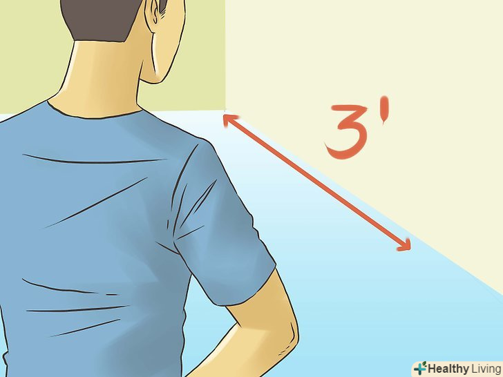 Відміряйте від кута 3 см (або 3 м) на одній стороні. можна взяти будь-яку міру довжини. Позначте відміряний ділянку точкою.- Можна помножити кожне число на одне і те ж число – і це правило все одно спрацює. Наприклад, це правило буде працювати для трикутника зі сторонами 30-40-50 сантиметрів або метрів. Якщо у вас велика кімната, можна використовувати наступні числа: 9-12-15, 6-8-10 метрів.