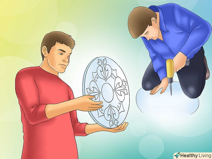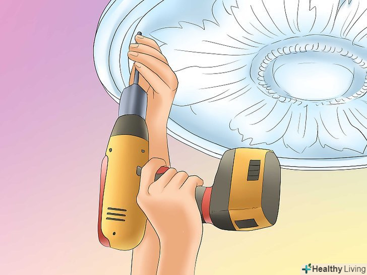 Придбайте люстру і стельову розетку. просвердлите отвір в центрі розетки за допомогою електричної дрилі і відповідного Свердла. Запитайте у електрика, який діаметр необхідний.