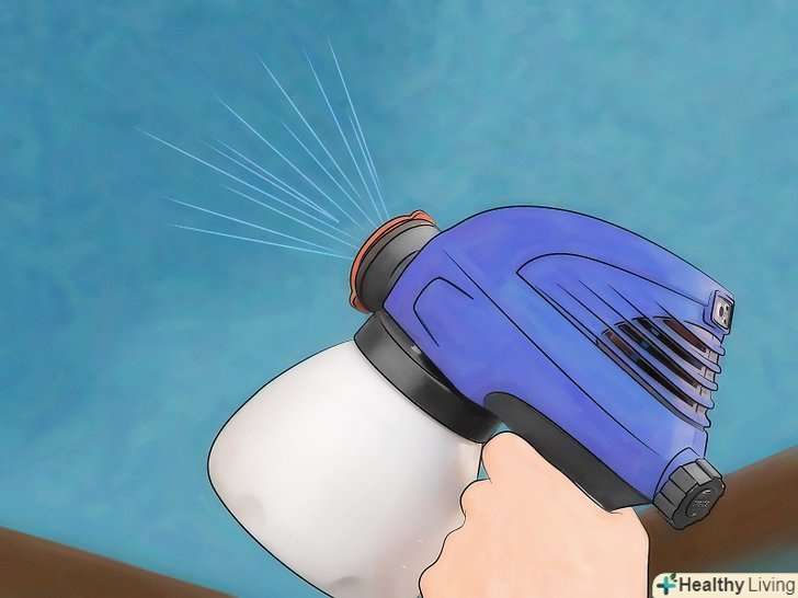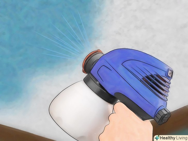 Розпиліть фарбу на стелю. ви можете знайти розпилювач в більшості господарських магазинів. Дотримуйтесь інструкцій, які йдуть з розпилювачем, але в цілому, стоячи на сходах, вам слід тримати носик розпилювача на відстані 8-10 дюймів (20-25 см) від стелі і рухатися плавно туди-назад послідовними рухами. Розбризкуйте фарбу в одному напрямку.