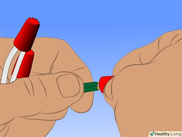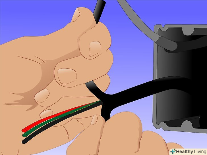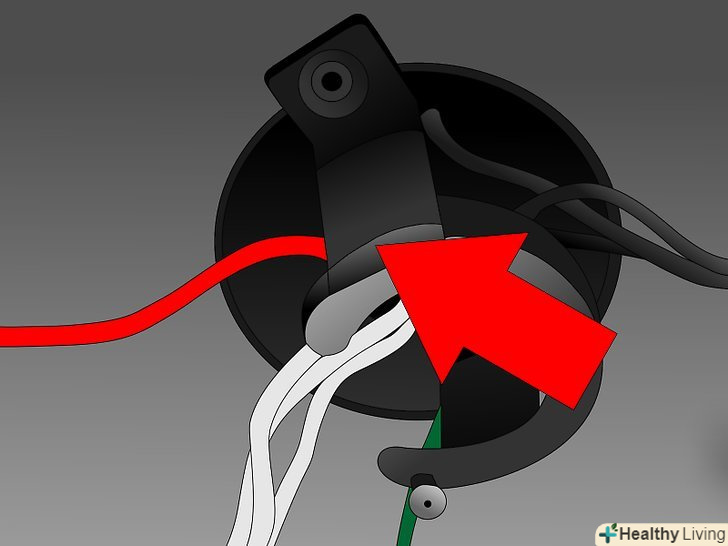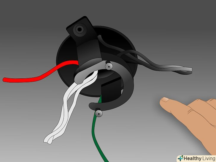 З'єднайте дроти заново, почавши з заземлення. Будьте впевнені в тому, що з'єднуєте чорний провід від живлення до вентилятора і білий провід до білого. З'єднайте заземлення з коробки, вентилятора і джерело живлення разом ізолюючим затискачем. Сховайте всі дроти всередину верхньої розетки і прикріпіть її до кронштейну.
