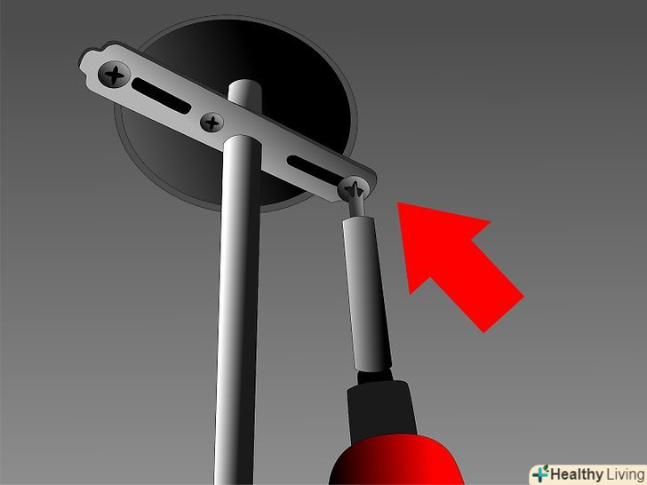Встановіть підвішуючий кронштейн на корпус, закріпіть його шурупами і заблокуйте шайбами. якщо шайб немає, то потрібно їх купити, тому що вібрація вентилятора може з часом послабити шурупи. Кронштейн може приймати вигляд півкола або гака, в залежності від вашого вентилятора. У будь-якому випадку, обережно просуньте в кронштейн гачок. Якщо це півколо, то закрутіть його до тих пір, поки кронштейн не встане в його пази.