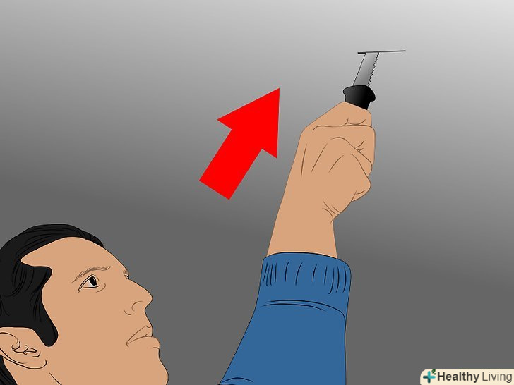 Після того як ви визначите, куди встановити вентилятор, "перевірте, чи є у вас доступ до харчування". перегляньте розділ нижче, де є кілька порад про джерело живлення. Відрегулюйте місце розташування так, як вам потрібно. Потім виріжете там дірку пилкою для гіпсокартону; розміром вона повинна бути якраз, щоб вільно просунути пальці і перевірити, чи є перешкоди для коробки. Таке маленький отвір легше залатати, якщо його місце розташування буде невідповідним.