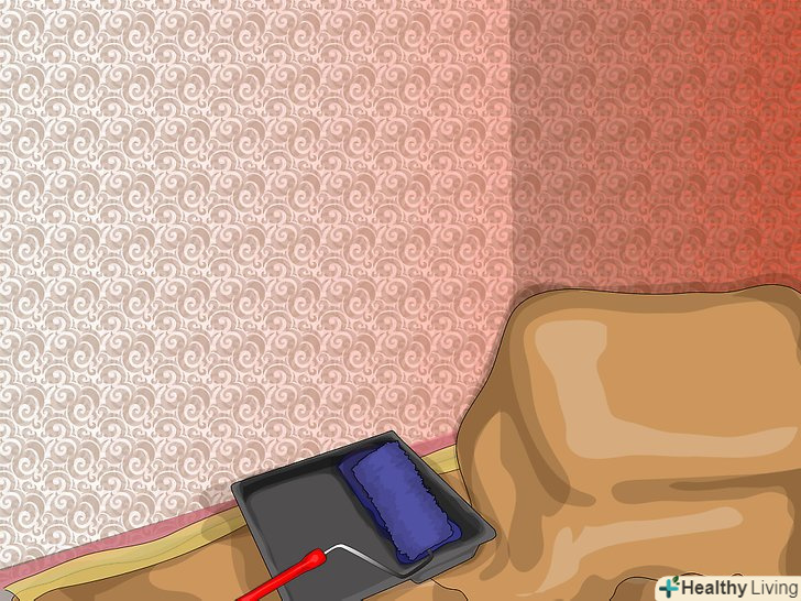 Підготуйте кімнату для фарбування як зазвичай. закрийте підлогу і меблі захисною тканиною, замажте шпаклівкою всі отвори в стінах, зніміть розетки, заклейте плінтуса скотчем і пофарбуйте всі кути за допомогою кисті.