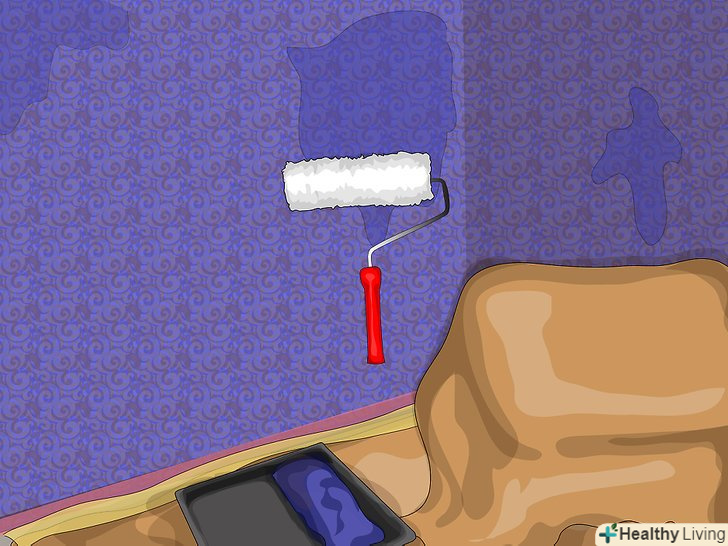 Фарба повинна покривати поверхню валика повністю. занурте валик у фарбу кілька разів і проведіть їм по сітці піддону. Це допоможе домогтися рівномірного розподілу фарби по всій довжині ворсу, а також видалити надлишки фарби.- Не варто глибоко занурювати валик в фарбу. Якщо фарба потрапить в отвір збоку валика, це може привести до появи крапель фарби на стіні.