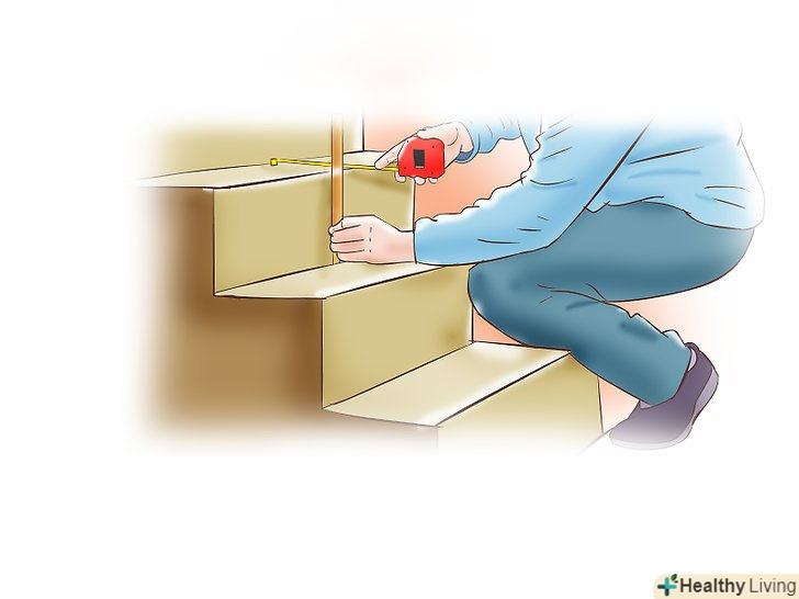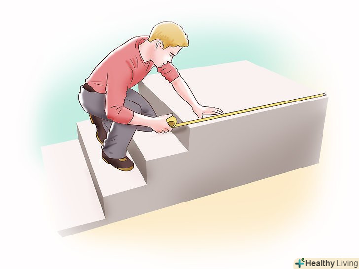 Використовуйте рулетку, щоб виміряти подступенок кожного ступеня.- Подступенок – це вертикальна частина щабля.