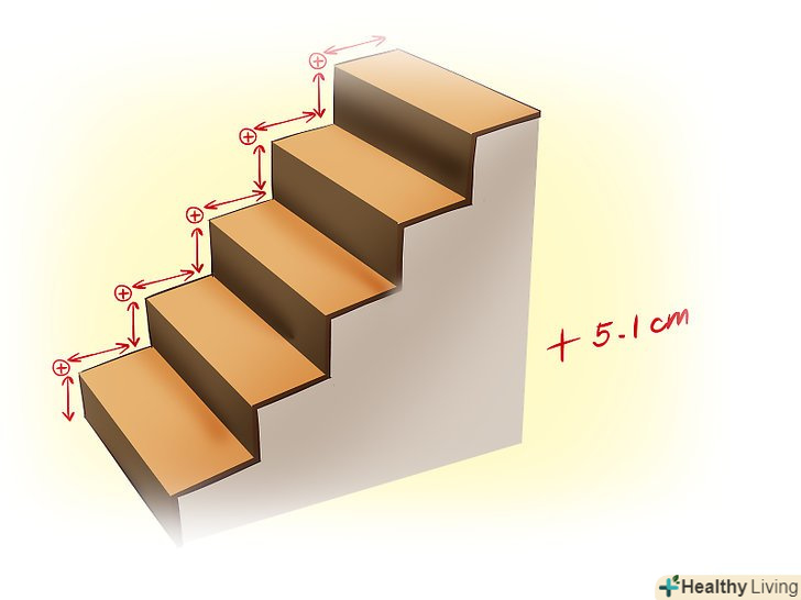 Складіть разом довжину і висоту вимірюваної ступені, щоб отримати її загальну довжину.- Додайте до цієї довжини ще 5,1 см на всякий непередбачений випадок.