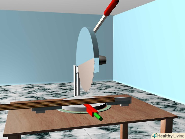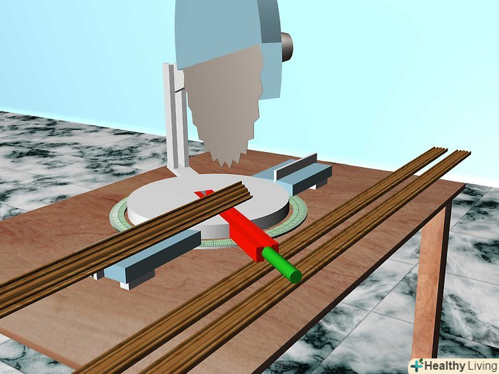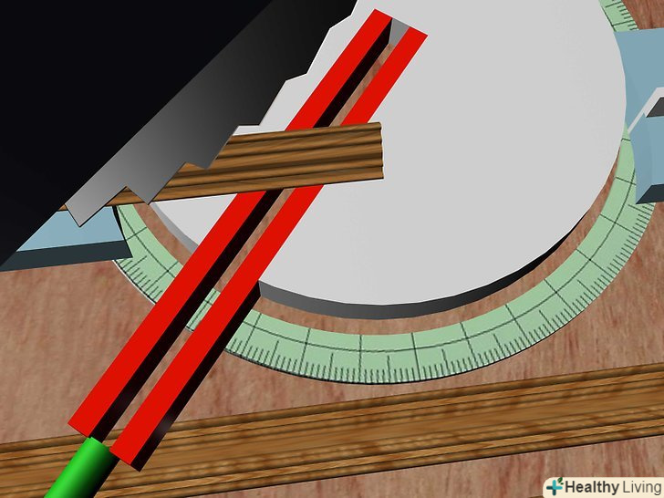 Зробіть, де це необхідно, косі зрізи. Якщо одна зі стін кімнати довше, ніж відрізки наявного у вас плінтуса, вам необхідно з'єднати дві довжини косим стиком. Заміряйте ту точку, в якій буде з'єднання, покладіть на верстат першу частину в перевернутому вигляді під кутом, як описувалося раніше. Налаштуйте лезо верстата на кут в 45º і розріжте плінтус. Покладіть другу частину на верстат і розріжте в тому ж положенні леза, при цьому стежте, щоб частина потрібна вам залишалася по іншу сторону леза.