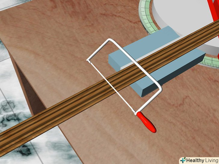 Закупіть тяги. вони бувають різної висоти і стилів, так що доглянете в магазинах і виберіть найбільш вподобаний вам дизайн. Зазвичай величина кута, під яким ставиться плінтус, по відношенню до стін варіюється від 38º до 52º, тому виміряйте його, перш ніж почнете різати.- Це керівництво використовує кут в 45º за замовчуванням; також ця величина кута є придатною для скосу кромки, можливо, що знадобиться злегка змінити його для інших зрізів.