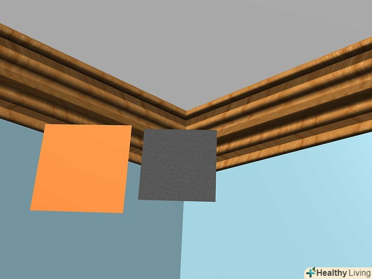 Відшліфуйте плінтус. наждачний папір з зернистістю 100 (сотка) підходить для обробки кромочних зрізів на незабарвленому дереві. Для оброблених білих плінтусів використовуйте білий герметик при вирівнюванні стиків. Герметик також хороший для замазування отворів від цвяхів або інших дрібних недоліків на плінтусі. Крім того, застосуйте герметик для усунення зазорів між стелею і верхом плінтуса, якщо такі є, що додасть плінтусу досконалий зовнішній вигляд.