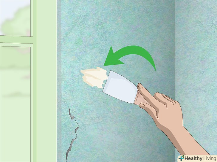 Закрийте всі пошкодження шпаклівкою і клеєм. їх також можна придбати в будь-якому магазині будівельних матеріалів. Огляньте стіни на предмет отворів і тих місць, де шпалери починають відшаровуватися. Закрийте отвори шаром шпаклівки і підклейте шпалери, якщо вони відклеїлися від стіни. [5]- Наносите такі матеріали комплектними інструментами.