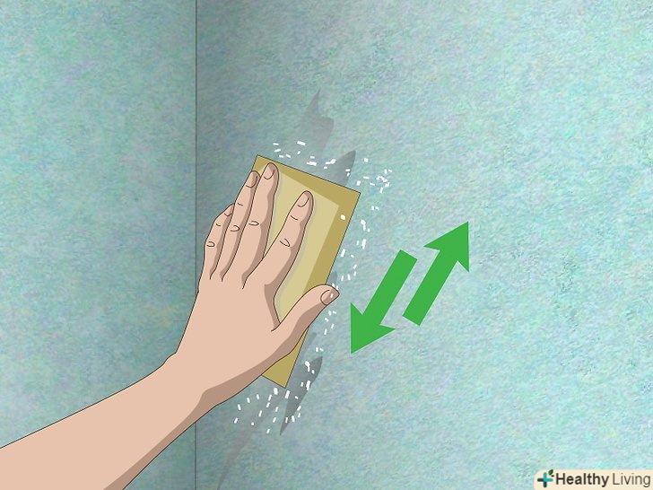 Обробіть нерівності. Грунтовка і фарба добре лягають на шліфовану поверхню. Всю поверхню стін слід обробити шліфувальними колодками. Приділіть особливу увагу тим місцям, які покриті герметиком і шпаклівкою, а також нерівним ділянкам стін. [6]