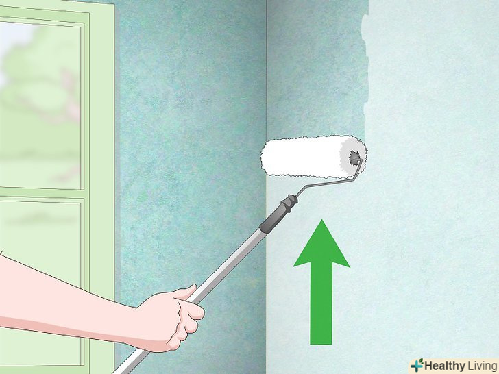Наносите фарбу M-образними рухами. використовуйте малярський валик, щоб наносити фарбу m-образними рухами. Кожне наступне рух має перекривати попереднє. Так потрібно пофарбувати всю поверхню стіни. [11]