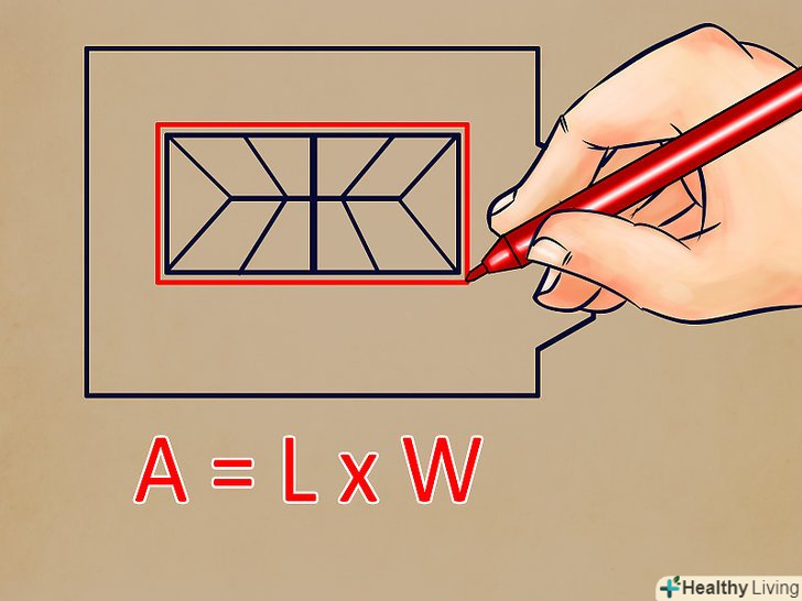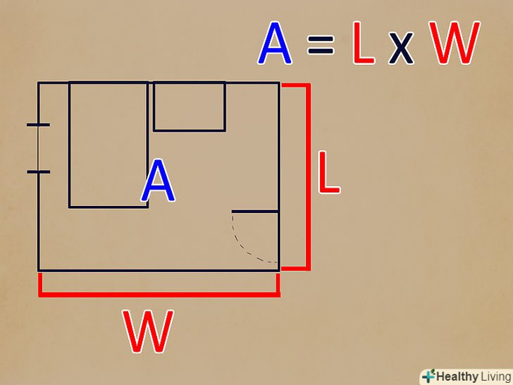Виміряйте довжину і ширину всієї кімнати. площа кімнати = довжина х ширина. [2] Виміряйте максимальну довжину і ширину. [3]- Якщо будь-які предмети або меблі заважають вам виконувати вимірювання, пересуньте їх.