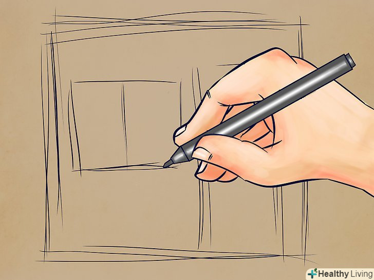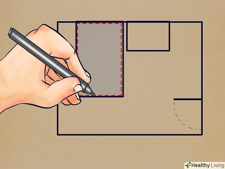 На папері намалюйте план вимірюваного статі. [1] на цьому плані записуйте ваші вимірювання. При складанні плану масштаб дотримуватися не обов'язково, але краще малювати якомога точніше.- Оскільки ви вимірюєте підлогу, не звертайте уваги на віконні та дверні прорізи.