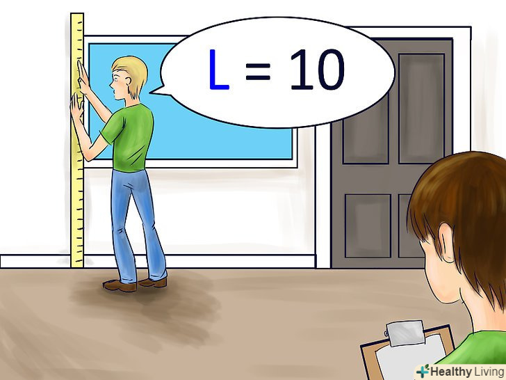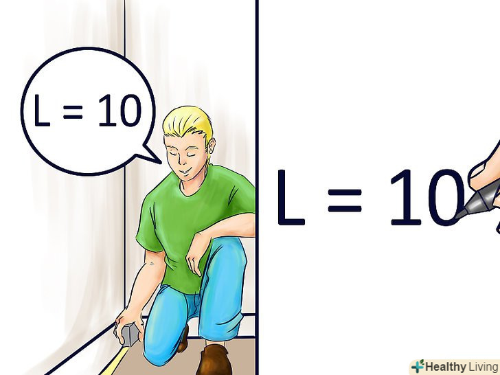 - При вимірюванні кімнати вам знадобиться допомога друга. Наприклад, ви можете робити вимірювання, а ваш друг буде записувати їх. [10]