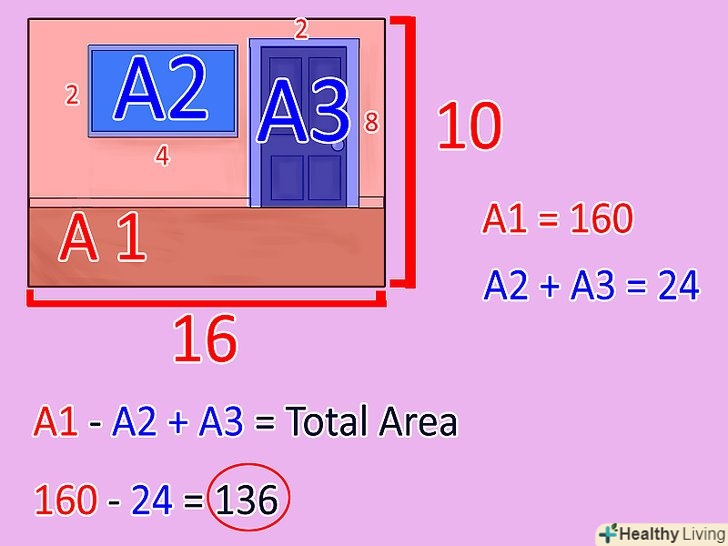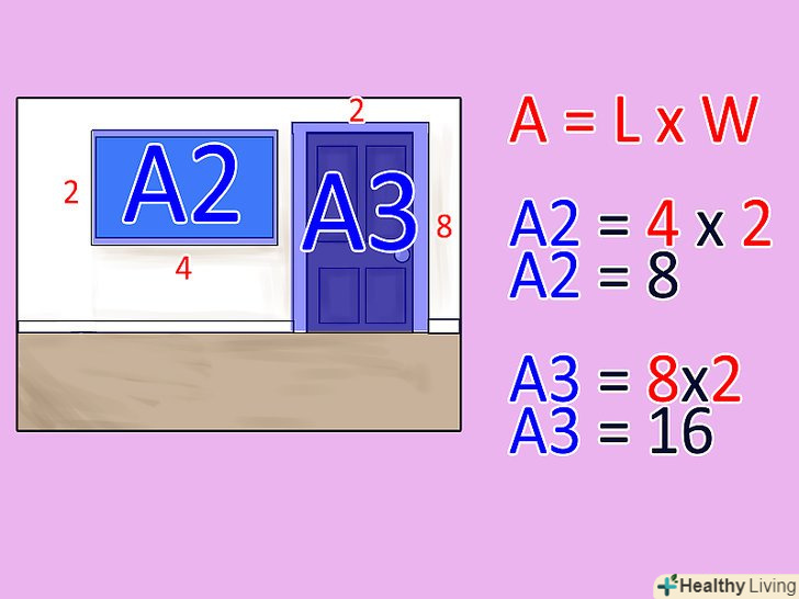 Помножте довжину на висоту, щоб знайти площу всієї стіни. Площа запишіть на плані.