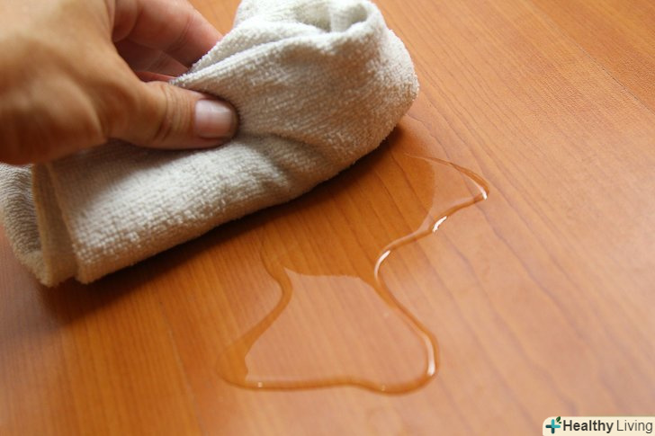 - Вимийте окремі ділянки складних забруднень за допомогою тканини і уайт-спіритом без запаху. він дуже активний, Щоб використовувати його регулярно, але все ж є відмінним засобом для видалення плям, таких як білих плям від води. Спершу обов'язково перевірте дію уайт-спіриту на невеликому і непомітному ділянці підлоги .