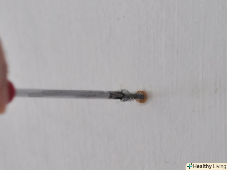 Встановіть пластикові дюбелі. штовхайте їх у стіну пальцями. Можливо, вам доведеться заштовхувати їх впритул до стіни за допомогою пластмасової ручки Викрутки, якщо не зможете це робити пальцями.