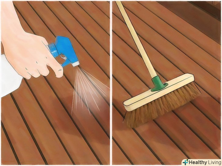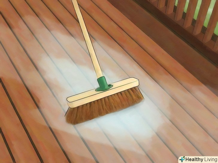 Нанесіть спеціальний миючий засіб на підлоги. Ви можете ознайомитися з технікою безпеки цієї продукції на самій продукції Трекс, шукайте «екологічні композитні очищувачі Трекс». Використовуйте продукцію відповідно до інструкції.