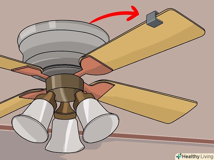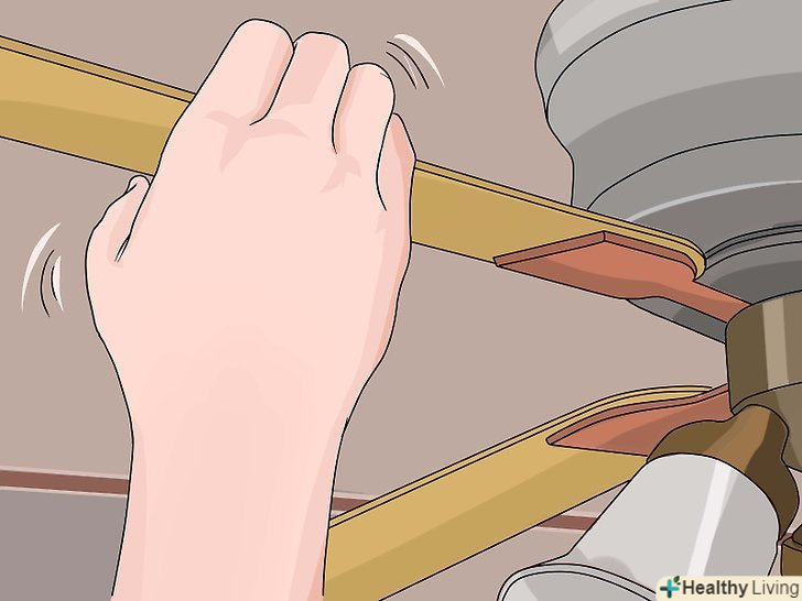 Встановіть лопаті на стельовому вентиляторі на одному рівні. це може бути зроблено за допомогою «балансуючого набору», який продається в торгових центрах і електричних магазинах. Ці набори мають самоклеючий матеріал, схожий на дуже товсті стрічки, які приєднані до верхньої частини лопатей вентилятора. Дотримуйтесь інструкцій пакета, але якщо ви дуже поспішаєте, то прикладіть невеликі шматочки цих наборів довільно, щоб вирівняти лопаті.