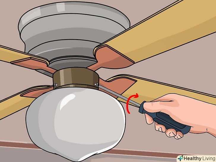 Затягніть установчі гвинти, тримайте сфери на місці. вони знаходяться в голові гвинта, які повинні бути затягнуті. Надлишковий тиск може привести до того, що скла в вентиляторі можуть розбитися, якщо докласти занадто багато зусиль.