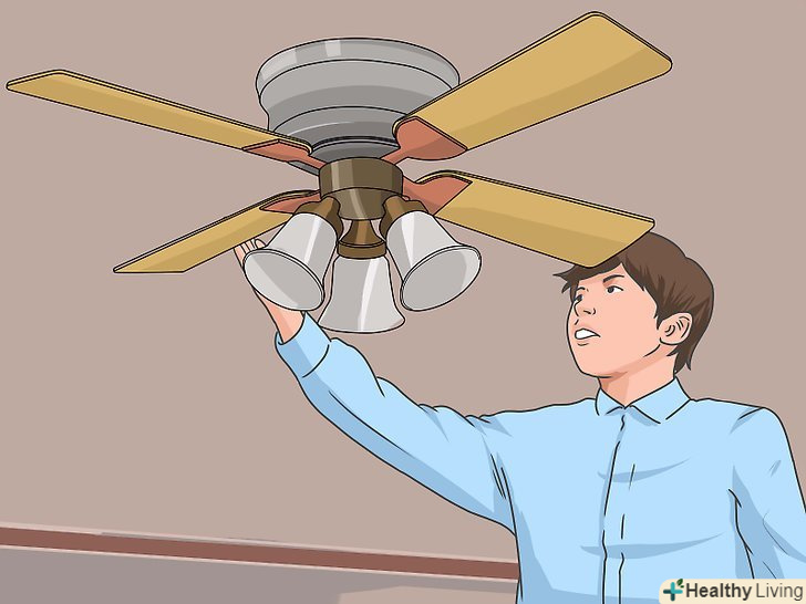 Перевірте сфери на світловому комплекті, якщо вентилятор оснащений ним. деякі комплекти поставляються з гумкою – як аксесуар, який обертається навколо «шиї» вентилятора, щоб ізолювати його від металевого фланця для запобігання скрипу в тому випадку, якщо пристрій виходить трохи з рівноваги або коливається.
