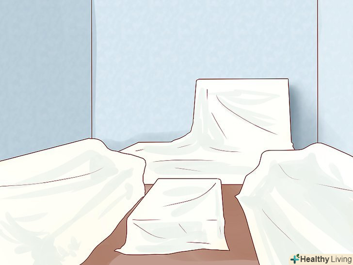 Розкладіть брезент і накрийте нею меблі. знімаючи фарбу і шпалери зі стін, ви може стати брудним. Фарба від смужок шпалер і пил будуть швидко накопичуватися і потрапляти в тріщини і щілини в меблях. Накрийте область, в якій ви працюєте, брезентом і покладіть ганчірки і простирадло на меблі.- Перемістіть невеликі предмети, такі як Лампи та фотографії з кімнати або до центру кімнати.