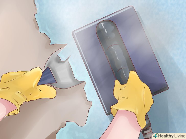 - Почніть з області п'ять на п'ять футів, не очищаючи всі стіни відразу. Це може полегшити вашу роботу в довгостроковій перспективі, так як, якщо шпалери не відірвуться під впливом розчину або пари, то ви зможете зривати шпалери смугами. [4]