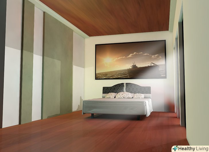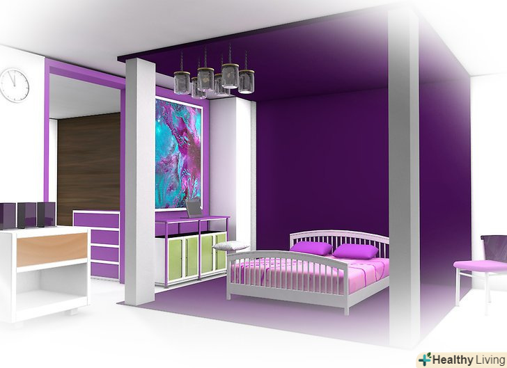 Подивіться вгору. багато людей замислюються тільки про те, в який колір пофарбувати стіни, але можна також пофарбувати стелю спальні, надавши кімнаті зовсім інший настрій. Якщо у вас низька стеля, то можна "підняти" його, дотримуючись білого або світло-жовтого кольорів. Якщо у вас висока стеля, то можна створити більш тепле і більш замкнутий простір, пофарбувавши його на один або два відтінки темніше, ніж колір стін.