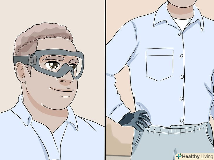 Приготуйте захисні окуляри, одяг з довгим рукавом і товсті рукавиці. ви будете працювати в умовах високої температури, і, щоб уникнути опіків, вам знадобляться захисні окуляри, сорочка з довгим рукавом і товсті рукавиці. [11]- Вам також знадобиться скребок для видалення фарби.