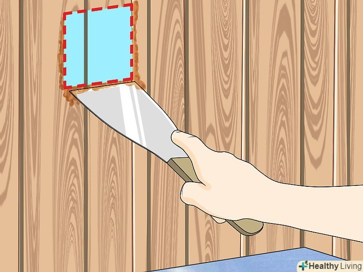Залишкову фарбу можна видалити зі стін скребком. Якщо ви не хочете фарбувати поверх старої фарби, використовуйте скребок, щоб видалити стару фарбу зі стіни повністю.- Підчепіть скребком шар фарби внизу стіни і проведіть їм знизу вгору, щоб фарба відшарувалася смугою. [4]