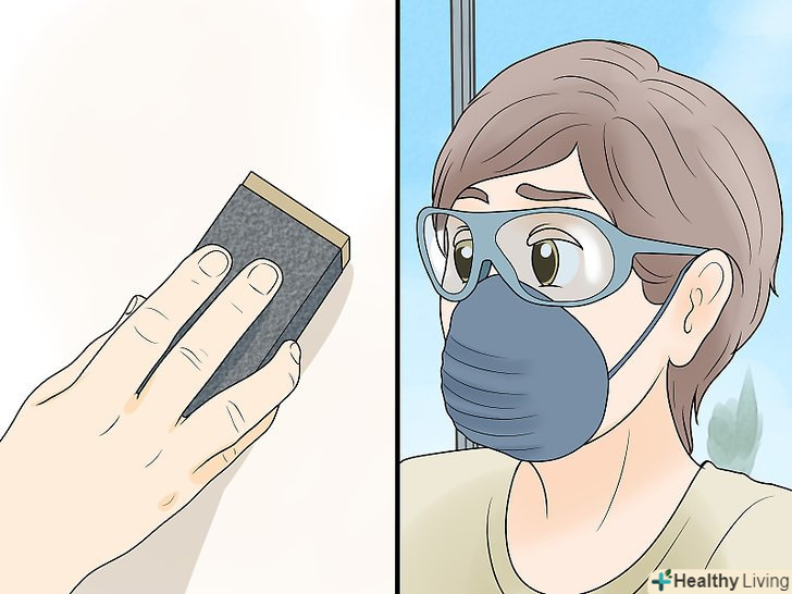 Зніміть верхній шар фарби. видаліть фарбу зі стіни зернистою стороною наждачного паперу, вставленої в шліфувальний брусок або шліфувальну машину. Притисніть наждачний папір до стіни і рівномірно тріть стіну в різних напрямках, зачищаючи квадрати площею приблизно 10 см2. Якщо ви використовуєте ручний спосіб, притискати шліфувальний брусок до стіни потрібно із зусиллям.- Обробіть всю поверхню стіни, щоб вся стара фарба стала бляклою. [3] потім зітріть зі стіни пил.