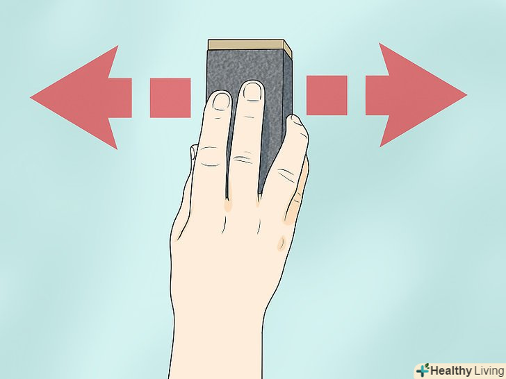Купіть пристосування для шліфування стін. терти стіну вручну шматком шкурки малопродуктивно, тому рекомендуємо вам купити шліфувальний брусок або ручну шліфувальну машину. Шліфувальний брусок-це невеликий предмет у формі паралелепіпеда з твердого матеріалу, на який натягується наждачний папір. Ручна шліфувальна машина схожа на дриль або болгарку; вона також заправляється наждачним папером. Обидва ці пристосування значно полегшують зачистку стін. [2]- Як правило, у шліфувальних брусків є затискачі для закріплення наждачного паперу. Закріпіть один край наждачного паперу затискачем, потім натягніть її і закріпіть другий край.