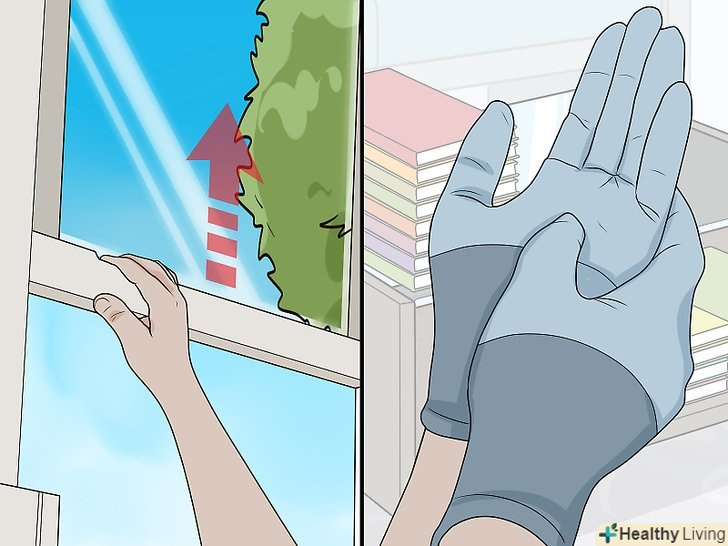 Приготуйте гумові рукавички і працюйте в добре провітрюваному приміщенні. Засоби для змивки фарби досить їдкі, так як вони відносяться до класу хімічних розчинників. [5] перед початком роботи переконайтеся, що Ви купили рукавички для роботи з хімічними речовинами. Працюйте в старому непотрібному одязі, який вам не шкода викинути.- Відкрийте вікна. Обов'язково провітрюйте приміщення під час роботи з розчинником, щоб в кімнаті не накопичувалися токсичні пари.