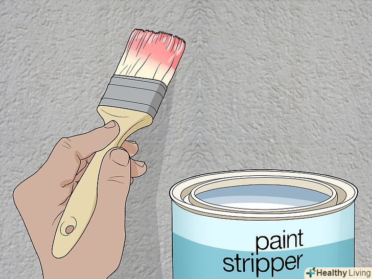Ретельно покрийте стіни розчинником для фарби. розчинник найзручніше наносити широким пензлем. Якщо у вас в господарстві немає такої кисті, краще купити її заздалегідь. Занурте кисть в розчинник і покрийте їм стіну повністю. Шар розчинника повинен бути не менше 3 мм в товщину, інакше він висохне занадто швидко. При цьому необов'язково намагатися нанести саме 3 мм розчинника — визначайте товщину шару на око. [7]- Якщо ви обробляєте вертикальні поверхні, вибирайте густий розчинник, по консистенції нагадує пасту, щоб він не тек і не капав на вас.