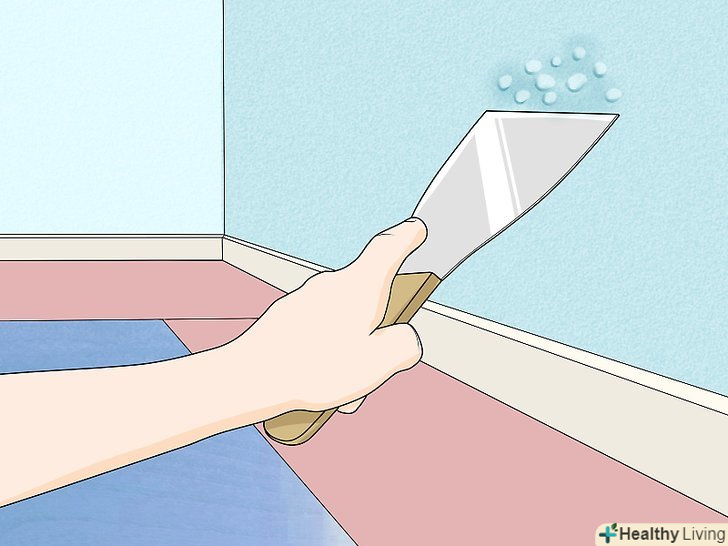 Як тільки на поверхні фарби з'явилися бульбашки, фарбу можна почати соскребать. після того як ви почекали необхідну кількість часу, фарба на стінах почне пузиритися. Це означає, що пора взяти скребок (якщо у вас немає спеціального скребка для фарби, можна обійтися шпателем) і зішкребти фарбу по стін. [9] фарба повинна відшаровуватися довгими смугами. Постарайтеся максимально видалити фарбу зі стін.- Підчепіть скребком шар фарби біля підніжжя стіни і проведіть скребком знизу вгору, щоб фарба відшарувалася смугою.