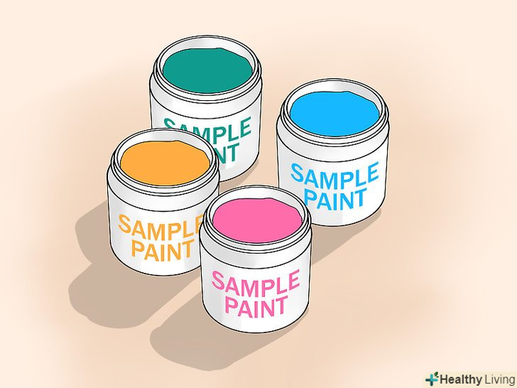 Придбайте пробники фарби, щоб протестувати їх безпосередньо на стінах. купіть невеликі пробники з фарбою в спеціалізованому магазині фарб. Поспостерігайте за результатом пробного нанесення фарби протягом декількох днів, перш ніж робити остаточний вибір. Подивіться, як сприйняття кольору фарби змінюється протягом дня, включаючи ті моменти, коли ви включаєте освітлення. Це дозволить вам отримати повну впевненість в тому, що вам сподобається зроблений вибір, коли ви втілите його в життя. [13]- Якщо ви не хочете протестувати фарбу безпосередньо на стіні, нанесіть її на покритий ґрунтовкою шматок гіпсокартону. Також можна принести додому готові зразки відтінків і спробувати використовувати їх для здійснення вибору.