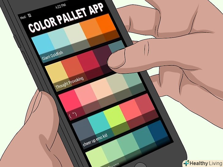 Використовуйте спеціальний додаток для підбору кольору фарб, щоб визначитися з колірною палітрою. знайдіть програми для підбору кольору в магазині додатків, виберіть відповідні і встановіть на телефон - вони допоможуть вам тестувати різні кольори. Окремі виробники фарб спеціально розробляють такі програми. Деякий з додатків дозволяють навіть завантажити фотографію, щоб підібрати відповідний до неї колір, наприклад, коли ви хочете знайти таку ж фарбу, яка вже використовувалася вами раніше. [7]- Наприклад, можна скористатися такими додатками, як» підбір кольору«,» Інтер'єри " та інші.