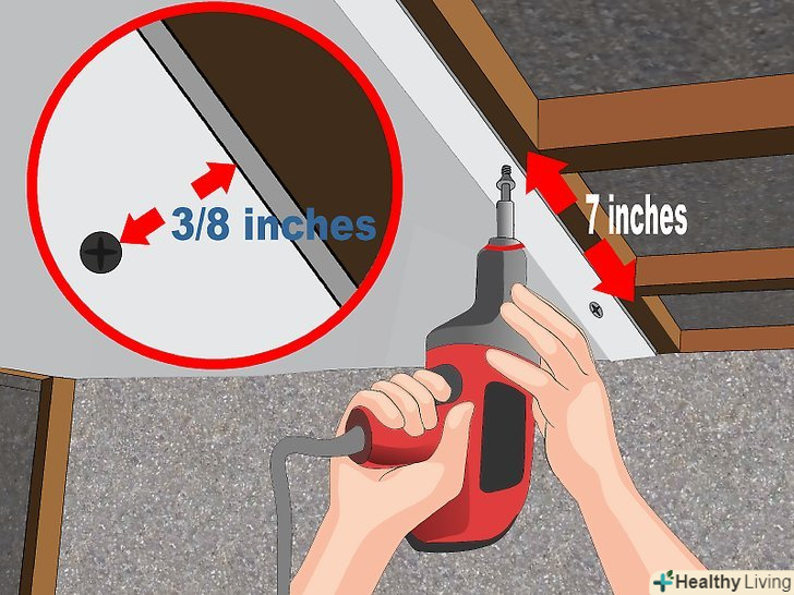 Цвяхи або шурупи повинні розташовуватися не менше ніж в 1 см від краю листа з інтервалом в 18 см один від одного. уздовж внутрішньої балки елементи кріплення повинні розташовуватися в 30 см один від одного.