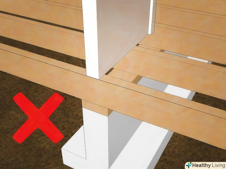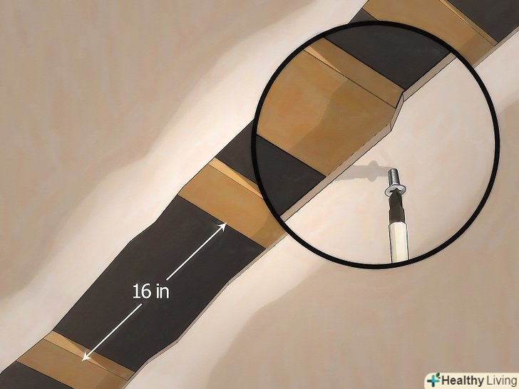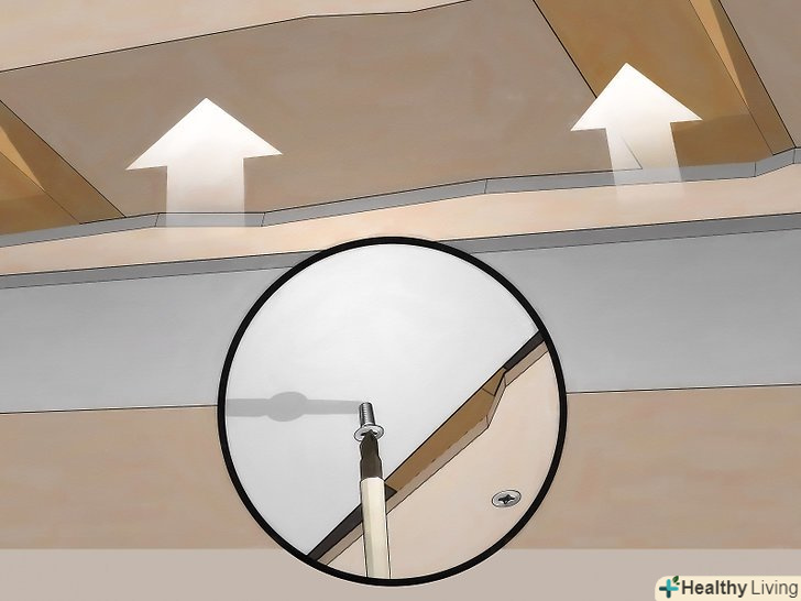 На стелі виміряйте ширину отвору після видалення стіни. розмістіть дерев'яні планки поперек нового отвору з відстанню 30-40 см один від одного (5 X 5 або 3 X 5 цілком підійде). Утримуючи їх нерухомо поперек отвору, з обох кінців закріпіть їх шурупами до стелі. Це буде нова опора для кріплення гіпсокартону.