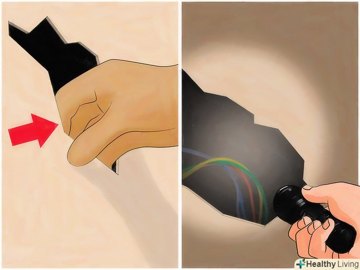 Одягнувши робочі рукавички, візьміться за край отвору в гіпсокартоні і потягніть. коли отвір буде достатнім, щоб просунути в нього голову, візьміть ліхтарик і огляньте простір за гіпсокартоном. Якщо ви не виявите за ним ніяких перешкод, тоді можна зносити залишки гіпсокартону з обох сторін за допомогою кувалди (або ногою, якщо ви взуті в робочі черевики). Продовжуйте вибивати залишилися листи гіпсокартону, попередньо виконуючи огляд внутрістенного простору як описано вище.