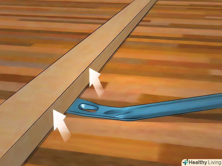 Після видалення всіх стінних стійок можна прибрати підлогову плиту. за допомогою монтажного брухту подденьте підлогову плиту, щоб відірвати її від чорнової підлоги. Те ж саме зробіть з стельової плитою; хто-небудь повинен підтримувати плиту, поки ви демонтуєте її за допомогою брухту. Дістаньте всі цвяхи, що залишилися в чорновому підлозі і стелі за допомогою плоскогубців або обценьків.